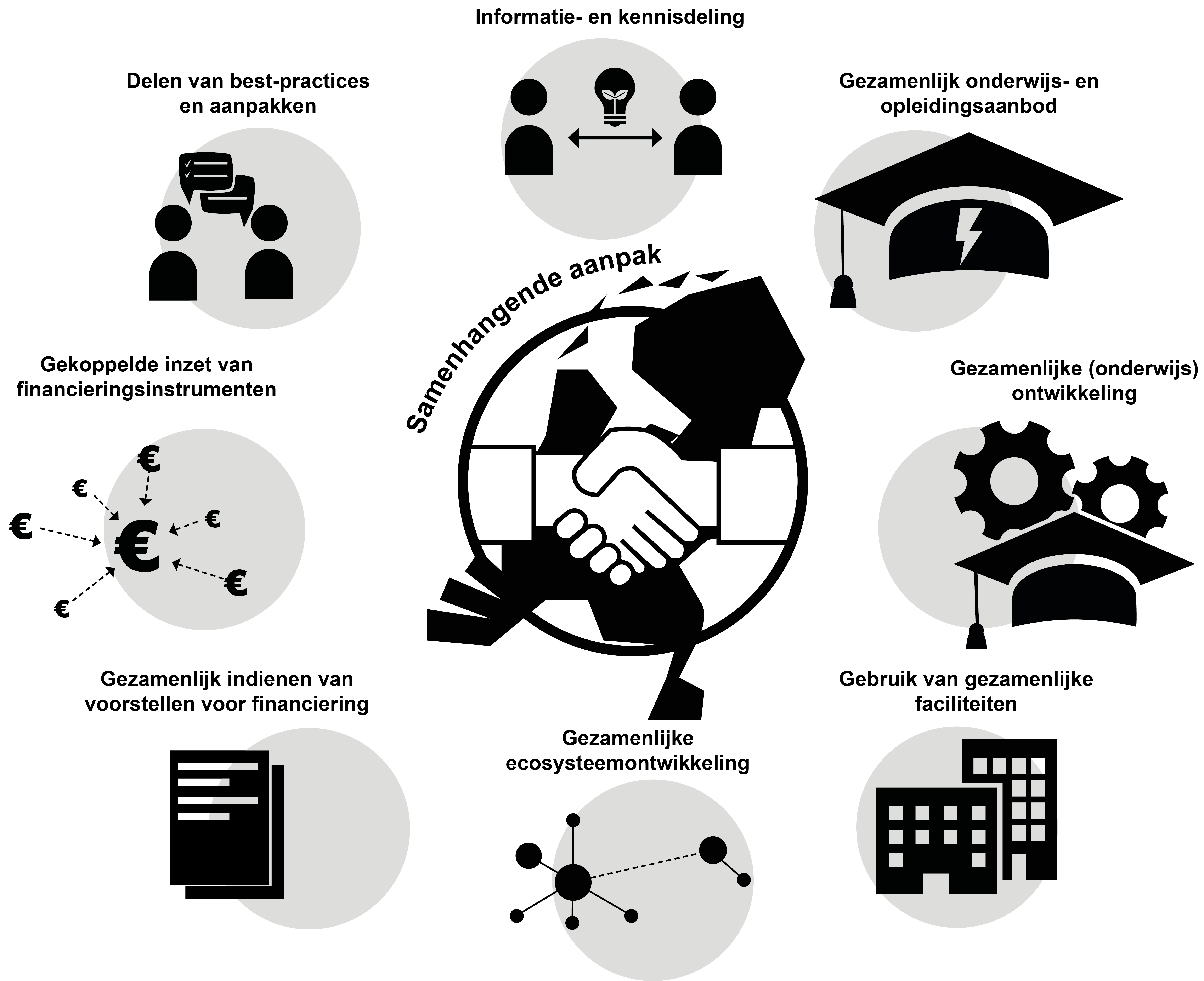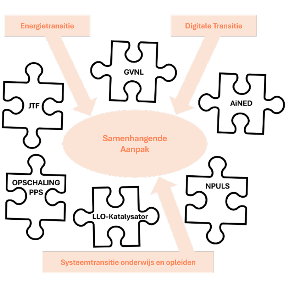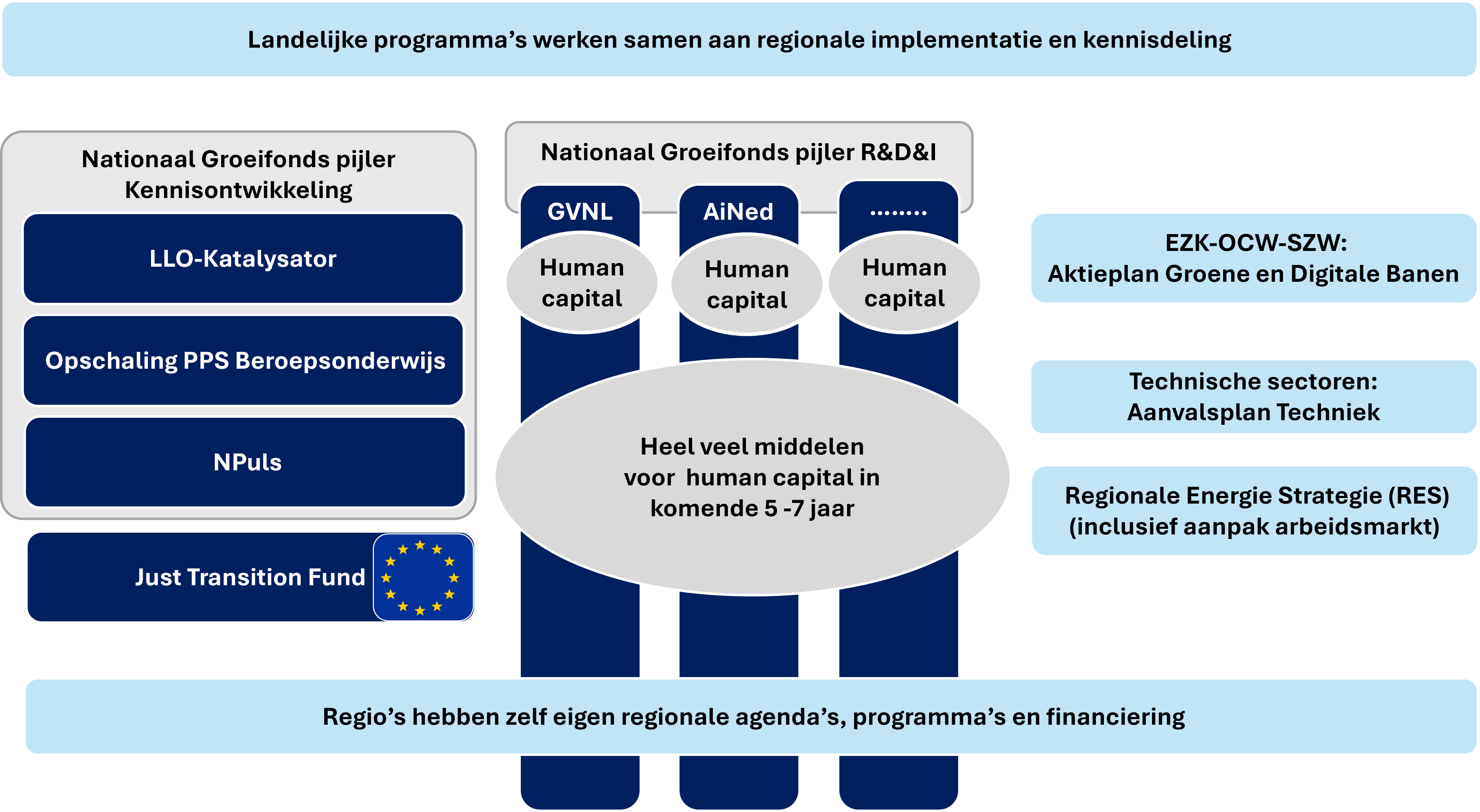 Zes nationale programma's initiëren projecten op landelijk, regionaal en in industrieclusters niveau. Daarbij gaat het om vijf Nationaal Groeifondsprojecten en één EU-programma: